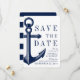 Um conjunto único de cartões salve a data adaptado ao seu futuro casamento, com um estilo náutico único. A frente do cartão de convite apresenta uma âncora vintage em negrito que complementa o estilo náutico. No verso estão marinhos escuros e listras brancas para completar a aparência. Todos os elementos estão desbloqueados, por isso diverta-te a criar e a fazer.