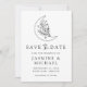 Convide amigos e família para salvar sua data de casamento com esta Elegante Lua Botânica e a foto das Estrelas para salvar a data. O livro save the date card apresenta uma ilustração da arte da linha preta de uma lua, enfeitada com estrelas cintilantes e uma folhagem botânica exuberante, todas colocadas sobre um fundo branco. A design é aprimorada com sutil caligrafia moderna, acrescentando um toque de sofisticação e talento contemporâneo. Personalize a parte de trás da data de salvamento com sua foto de noivado vertical e seu site de casamento.