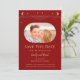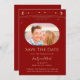 Mística Dark Red Sun Moon Stars Space Save As Datas apresentam um sol dourado, lua e estrelas armadas sobre um fundo vermelho escuro. Dentro é a sua foto favorita e o seu personalizado salva as informações de data. Personalize editando o texto nas caixas de texto. Projetado por ©2022 Evco Studio www.zazzle.com/store/evcostudio