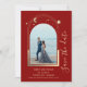 Sol Dourado Vermelho Místico Vermelho Sol Lua Espacial Celestial Salvem As Datas apresentam um sol dourado, lua e estrelas armadas sobre um fundo vermelho escuro. Dentro é a sua foto favorita e o seu personalizado salva as informações de data. Adicione uma foto adicional no verso. Personalize editando o texto nas caixas de texto. Projetado por ©2022 Evco Studio www.zazzle.com/store/evcostudio