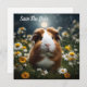 Imagem Sob Uma Lua Cheia É Um Porco De Guiné Marrom E Branca Em Um Campo De Margaridas Brancas E Amarelas.