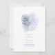 Uma paleta de cores de tendência em tons de cinza de aço a azul-para-brisas; quadros geométricos cintilantes e layouts elegantes de design, fornecem a base para esta maravilhosa suíte de casamento. Quer você esteja planejando um casamento de destino ou ficando perto de casa, este delicado conjunto de design de folha de palma faz uma escolha atraente. O cartão 'Salvar a Data' do casamento mostrado aqui também apresenta uma cor azul macia no reverso. É fornecido um modelo para adicionar todos os detalhes do evento. Procure ID956 para ver outras peças e opções de cor para este conjunto.