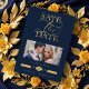 Luxurious Fancy Blue marine Photo Golden Effect Typography Save the Date Card with Envelope.
