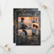 The Sophisticated Wedding Charcoal Black Gold Effect Abstract Texture 4 Photo Collage Save the Date Card is the ideal choice for announcing your wedding with a vanguard style full of its own personality, away from the conventional. The design facilitates the integration of engagement images into a modern grid format that stands out against the textured grunge background, being a perfect option for an industrial style wedding or a celebration in a repurposed urban space. By using this wedding announcement, an impactful first impression is guaranteed, where the elegant typography and finishes that simulate the glow of gold enhance the importance of the event. This product adapts perfectly to evening celebrations or events with an alternative luxury theme. The arrangement of the photos and text ensures all relevant information is clear, making this wedding card an unforgettable keepsake for all guests.