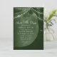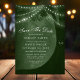 Anuncie seu dia especial com nosso cartão de save the date de luzes de árvore verde. Este charmoso design apresenta uma árvore rústica adornada com luzes de corda e iniciais esculpidas, criando uma atmosfera quente e convidativa. Perfeito para casamentos ao ar livre e com tema florestal, este save the date único irá cativar seus convidados e definir o tom perfeito para o seu casamento.