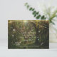 Bela floresta encantada com bonito borboleta rosa, turquesa e azul, brilho dourado, luzes de cordas, cartões salve a data.