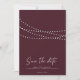 Luzes de Corda Minimalistas Modernas com Foto para Salvar a Data - Design minimalista moderno com luzes de corda cintilantes, bela caligrafia moderna e sua linda foto. Mostrado em burgundy, mas estará disponível em outras cores populares. Você também pode facilmente alterar a cor do fundo para combinar com o seu tema de cores. * Também disponível para download digital.