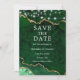 Cartão de Compromisso de Geodo de Ágata Mármore Esmeralda Verde e Dourado com Luzes de Corda - Foto de Fundo