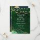 Cartão de Salvar a Data de Geodo de Ágata Mármore Esmeralda Verde e Dourado com Luzes de Corda - Foto de Fundo