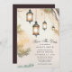 Luzes De Lanterna Botânica Da Árvore Rústica Salvem O Cartão De Data. Belo design de casamento elegante e com cor d'água com lanternas botânicas rusticadas penduradas. Esta design de casamento moderna personalizada pode ser facilmente personalizada com os seus próprios detalhes de casamento.