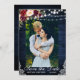 Luzes azuis de madeira azul russa Foto salva o cartão de data inclui rosas de queimaduras de cor floral, rosas cor-de-rosa e verde.
