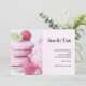 Guarde o cartão de ponto com uma fotografia deliciosa que inclui uma torre de macarões cor-de-rosa com framboesas colocadas à volta. Deliciosamente divino.