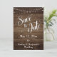 Reserve A Data Madeira Rústica, Luzes Brancas e Script, Salvar Da