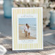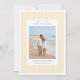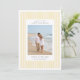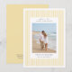 Anuncie seu próximo casamento com esses elegantes cartões de aviso de data com antecedência da Redwood e Vine Design Co, apresentando uma foto vertical contra um fundo clássico de listras finas préppy em amarelo manteiga suave e branco crocante. Personalize o verso com texto adicional e um código QR personalizado que leva ao site do seu casamento para mais informações.