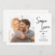 Esta simples mudança de casamento no anúncio da data oferece texto manuscrito e uma foto quadrada em um fundo branco. Informe aos seus convidados que você remarcou seu casamento para uma data posterior com este simples cartão. O design é acentuado com um pequeno coração.