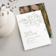 Ilustração delicada e elegante de flor desenhada à mão e detalhes modernos de tipografia de script, em verde e branco escuro, com fotos de casal no verso, simples e romântico. cartões salve a data florais de excelente para casamento rústico moderno, casamento no jardim do país, e casamento simples no verão e no inverno. Totalmente personalizável com qualquer cor para corresponder ao seu tema de casamento.