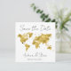 Cartão moderno Ideal "Salve a Data" para o casamento de destino. Faux gold foil map do Mundo. Coloque o coração onde quiser