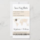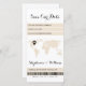 Salve o cartão de data com o estilo eletrônico de passagem de embarque é uma forma única e na moda para compartilhar seus futuros núpcias com os entes queridos. Este design apresenta um esquema de cor bege creme de tendência junto com um mapa mundial e um pino de destino que você pode personalizar e mover para realçar sua localização de casamento. Com seu design e personalizáveis recursos, este cartão certamente fará uma impressão duradoura em seus hóspedes e os entusiasmará pelo casamento de destino de seus sonhos. Encomende agora e comece a espalhar a notícia!