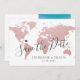 O mapa mundial rosa empoeirado em um cartão de salve a data para um casamento no destino com um marcador de localização de coração móvel e sua foto de noivado ao lado de uma tipografia moderna fofa e elegante que é bonita e minimalista. Perfeito para locais de casamento em destinos tropicais, de praia, ilha, cidade, montanha e aventura em todo o mundo. Clique em PERSONALIZAR MAIS para mover o coração, alterar o plano de fundo e a cor do texto, alterar as fontes. Verifique nossa loja de designer para itens de coordenação!