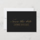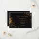 Um fundo de abstrato que lembra o mármore em tons de cinzas de carvão a preto, veinado com ouro reluzente, é o pano de fundo para textos elegantes e layouts modernos de design nos pedaços desta bela suíte de casamento. O cartão Save the Date mostrado aqui apresenta o texto acima mais o texto opcional do script fluente e uma modelo para adicionar os detalhes pertinentes do casamento frente e verso. Procure ID644 para ver todas as peças de coordenação neste conjunto.