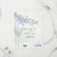 Casamento moderno dos Partidos Temáticos Salve a Data design apresenta margarida roxa-azul-d-água e tipografia moderna de script emparelhada com a letra serif tradicional. O design é colocado em amostras de cor verde-d'água de sábio rústico correspondentes e acentuado com pétalas de margarida correspondentes. #SaveTheDate #Daisies #ModernWedding