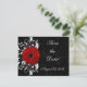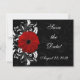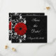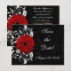 Conjunto de convite de casamento apresenta Gerbera Daisy Vermelho Verdadeiro em fundo preto com destaque em pergaminho branco. Perfeito para inverno, outono, primavera, verão, qualquer estação. Fácil de personalizar online! Conjunto completo inclui convites, cartões de resposta rsvp, cartões de agradecimento, selos de envelope, photocards, cartões de lugar de mesa, fichários e mais!