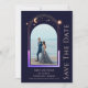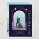 Marinho Místico Arco-Íris Azul Sol Lua Espacial da Estrela Cósmica Astronomia Celestial Salvar As Datas apresentam um arco-íris colorido sol, lua e estrelas em um fundo azul marinho escuro. Dentro é a sua foto favorita e o seu personalizado salva as informações de data. Adicione uma foto adicional no verso. Personalize editando o texto nas caixas de texto. Projetado por ©2024 Evco Studio www.zazzle.com/store/evcostudio