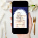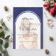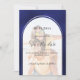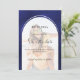 Um cartão Salvar Data para um tema de casamento azul. Um fundo azul marinho, a cor azul é irregular. Personalize e adicione uma foto, data e seu nome.