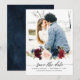 Um belo casamento floral salvou a data com gráficos florais pintados à mão de cor d'água / rosas em tons ricos de azul marinho, vinho burgundy marsala vermelho e rosa pincel / pêssego com uma fonte encantadora de estilo de inscrição à mão. Você pode substituir a imagem por sua própria imagem. Entre em contato comigo para obter ajuda sobre a personalização ou se você precisar de outro produto com este design.