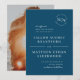 Este convite de casamento moderno e azul marinho coloca o foco no casal de se casar com uma tipografia de linha grande e limpa e um detalhe único com a data do casamento em um layout de selo chic. Não se esqueça de adicionar sua fotografia de noivado favorita ao backer e enviar um lembrete de casamento que seus hóspedes não esquecerão logo.
