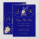 Reserve A Data Marinho Azul Dourado Monograma Casamento Salvar Da