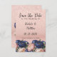 Reserve A Data Marinho Azul e Rosa Dourado Casamento Floral