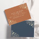 Esse convite rústico, elegante, e azul marinho e terraço Salvem a data contém flores douradas, fazer a escolha perfeita para um casamento outono. Uma bela mistura de tons de terra e estilo chic para dar o tom para o seu dia especial.