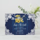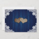 Casamento floral rústico azul marinho, exceto o cartão de data que contém uma lata de rega e girassóis contra um fundo de madeira de celeiro adornado com rendas florais brancas e luzes de cordas. Design de cartão perfeito para complementar o seu marinho azul de país rústico, quintal, jardim ou festa de casamento de celeiro inspirado nos girassóis.