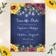 Estes cartões salve a data apresentam um design de aquarela com girassóis e flores de burlu sobre um fundo azul marinho com luzes de jarro mason. Personalize estas cartas com o seu próprio texto. Estes cartões fazem parte de uma coleção que inclui outros artigos de casamento. Visualize a página de coleta ou visite nossa loja para ver o intervalo de cheios.