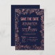 Elegante, moderno, bonito, glamouroso, e giz faux rosa dourado esparso borda de padrão floral desenhado à mão com brilho espalhado em um fundo azul marinho, cartão de casamento Save-the-Date. Este design clássico e sofisticado é perfeito para o casal de competição de tendências e na moda. Personalize com sua própria mensagem na frente, assim como um monograma personalizado inicial no verso. Todas as impressão de fotos. ***Para solicitações personalizadas relacionadas a mudanças nos aspectos do design, incluindo trocas de cores ou placas de produto correspondentes, ou qualquer outra pergunta relacionada ao design, clique no botão "Contato" ou envie-nos um e-mail diretamente em iiy.invites@gmail.com e teremos todo o prazer em fazer qualquer alteração ou mesmo criar um novo design personalizado.