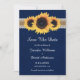 Casamento com marinho rústico e girassol, personalizado, salve o cartão de data com girassóis em uma colmeia vintage e fundo de renda enfeitado com luzes de cordas.