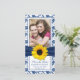 O casamento com fotos de girassol amarelo, azul-marinho e branco floral damascos salva o cartão de aviso. Um belo casamento de fotos com temas azuis e amarelos salve a data. A flor neste casamento fotográfico, exceto a data, é um girassol amarelo brilhante. Para alterar o texto e a foto, use as opções personalizar. Para fazer outras alterações, use a ferramenta de personalização do Zazzle. NOTA: Este convite é um design sem nenhum embelezamento 3D.