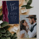 Este elegante e moderno salve a placa de data apresenta uma cor d'água borrifada agate border com falso brilho prateado. O texto da cinza prateada aparece em um fundo azul marinho. Substitua facilmente a imagem de amostra no lado oposto por uma foto vertical da futura noiva e noiva.