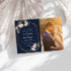 design floral geométrico com cor d'água púrpura pintada manualmente com flores azuis e azuis marinhos e uma foto personalizada. Os detalhes de cor e texto podem ser personalizados.