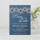 Marinho Elegante Blue Silver Snowflake Salve A data apresenta fundo azul marinho, floco de neve de cristal prateado e modelo de texto moderno. O verso da placa tem um nome modelo. Um design perfeito que irá combinar a decoração do casamento como o tema inverno, moderno, romântico e luxo.Clique no botão personalizar para personalizá-lo com seu próprio texto.