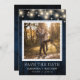 Quando você está tendo um casamento de inspiração rústica e você quer marinho que esta suíte de casamento realiza ambos. Este convite apresenta um fundo de madeira rústica de marinho, luzes de cordas e uma foto.