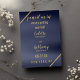 Este casamento geométrico simples, chic, moderno e minimalista, salvo a data é perfeito para o seu evento de dia especial contemporâneo. Ele apresenta uma citação de tendência, " Entra-nos." O texto encontra-se em cantos dourados e elegantes, falsos, em fundo azul marinho. Personalize a fonte e a cor do plano de fundo clicando no botão "Detalhes" e, em seguida, "clique para personalizar mais.