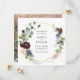 Nosso cartão de data de salvamento quadrado moderno apresenta uma moda geométrica dourada (não real) com cor d'água eucalipto e burgundy e flores azuis. No verso, adicione a foto do seu noivado.