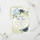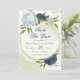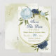 Belo casamento salve o cartão de data com marinhos e flores azuis empoeiradas e folhas verdes Os detalhes da brilha do ouro são simulados. PARA MAIS PRODUTOS CORRESPONDENTES, clique na coleção acima ou entre em contato comigo