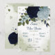 belo marinho romântico e flores azuis empoeiradas e folhas verdes verde verde-botânico salvar o convite para data