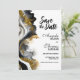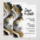 Informe seus amigos e entes queridos do seu futuro casamento com este elegante save-the-date moderno de mármore ágata preto e dourado. (Nenhum brilho real foi usado neste convite.)