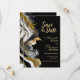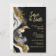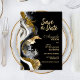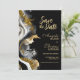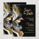 Informe seus amigos e entes queridos do seu casamento futuro com este elegante save-the-date moderno de mármore ágata preto e dourado. (Nenhuma purpurina real foi usada neste convite.)