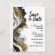 Informe seus amigos e entes queridos do seu futuro casamento com este save-the-date moderno e elegante de mármore ágata preto e dourado. (Nenhum brilho real foi usado neste convite.)