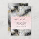 RSVP de Casamento com um padrão marmoreado elegante e moderno. Cinzas brancas, pretas e enfumaçados marmoreadas com fitas finas de espirais douradas ao longo do padrão. Um fundo gradiente de rosa claro debaixo do padrão marmoreado.